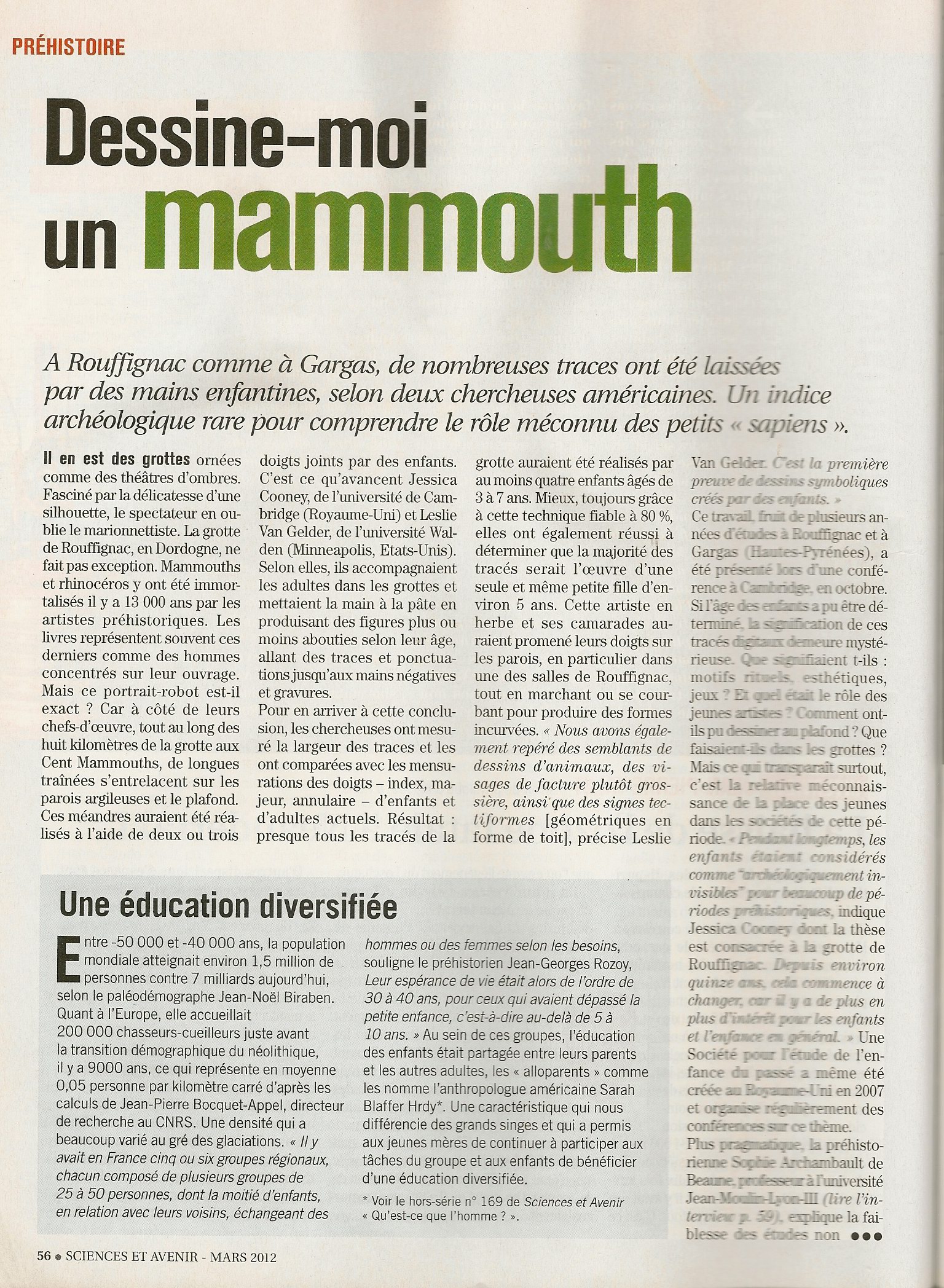 Dessine moi un mammouth, Sciences & Avenir 781, mars 2012 (2a).jpg